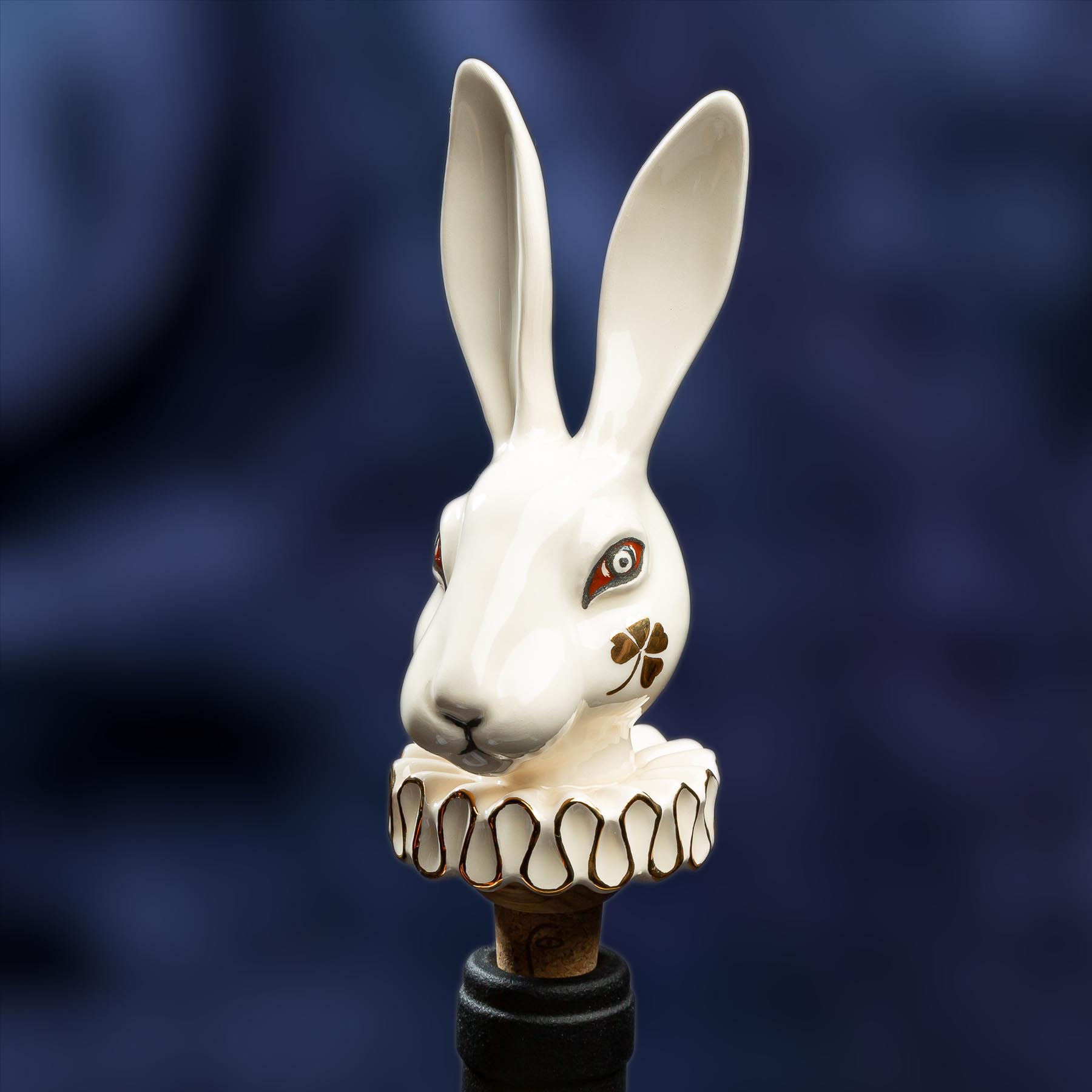 Transport yourself to a world of whimsy and wonder with our Rabbit’s Wonderland Cork. This meticulously handcrafted ceramic wine cork captures the essence of the beloved rabbit character from Alice in Wonderland, with its intricate details and enchanting design. Delicately adorned with golden accents, this unique cork adds a touch of magic and sophistication to your wine experience. Let it be a conversation starter at your gatherings or a cherished piece in your collection, bringing a dash of fantasy and elegance to every pour. Each of our items is meticulously packed and insured for safe international shipping, arriving in a beautifully designed gift box. Each wine cork also includes a wooden stand, available in your choice of light wood or dark grey. Please note each piece is unique, colors and shades may vary.