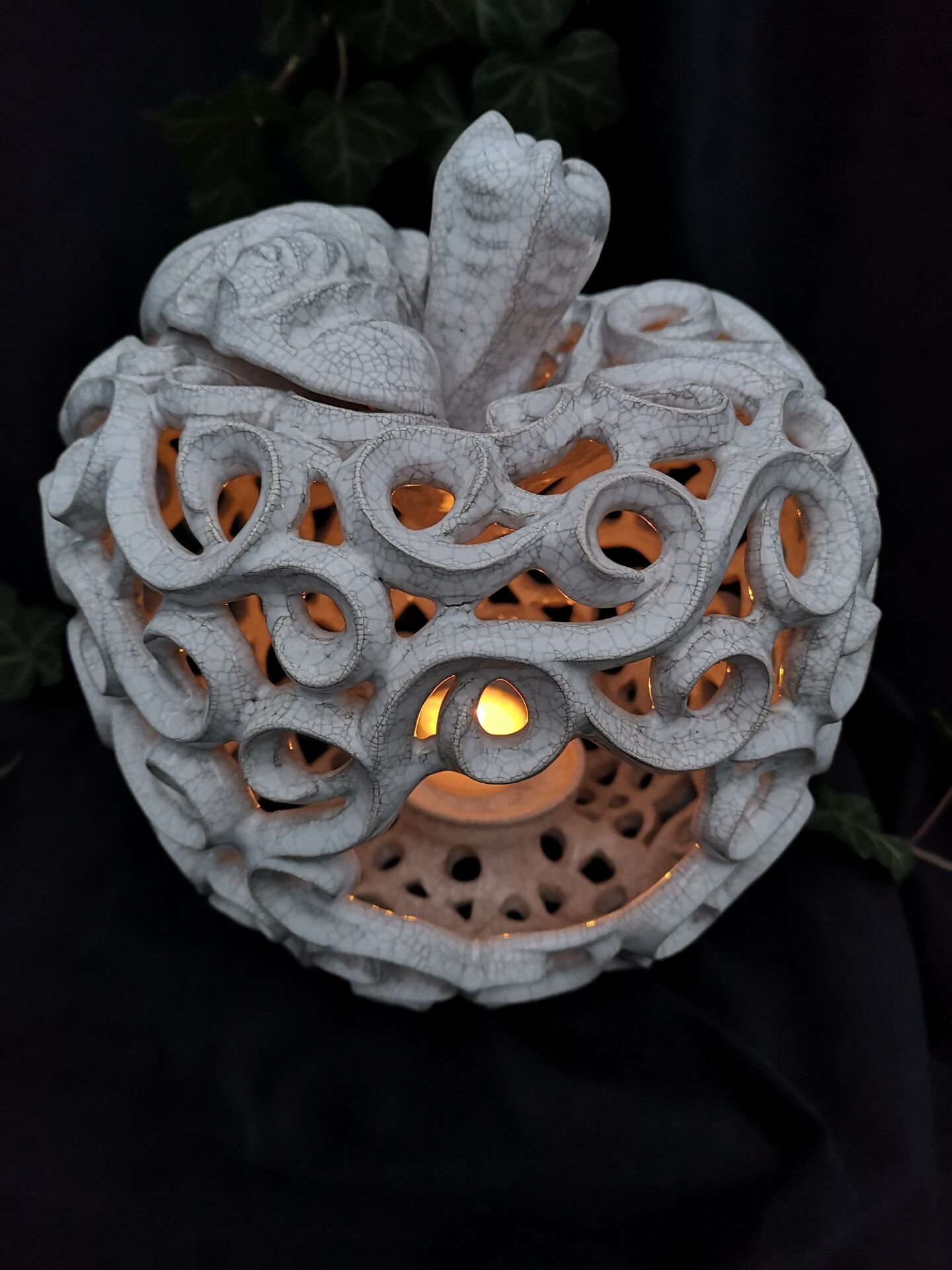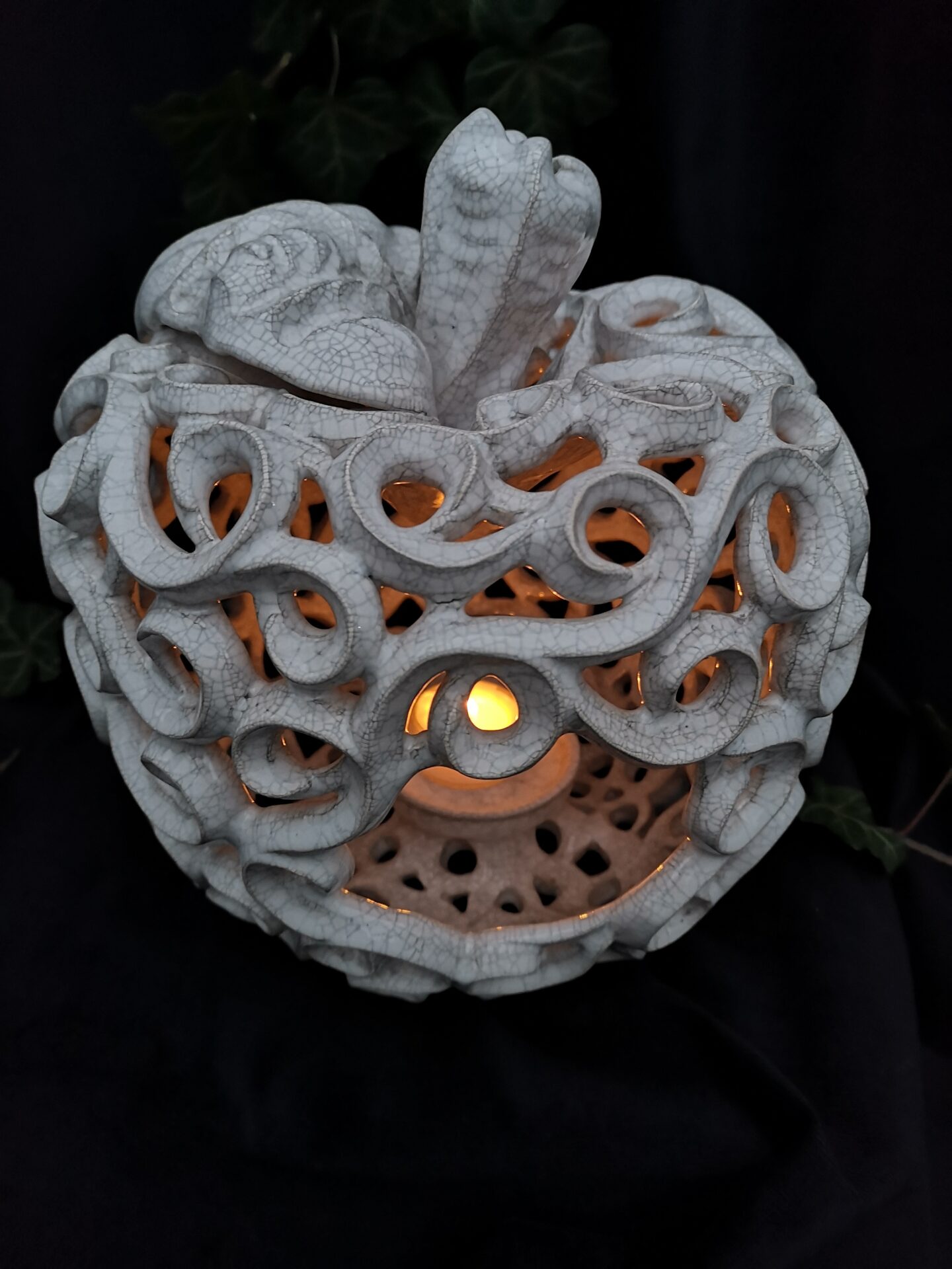 Apple-Shaped Candle Holder – White crackle color